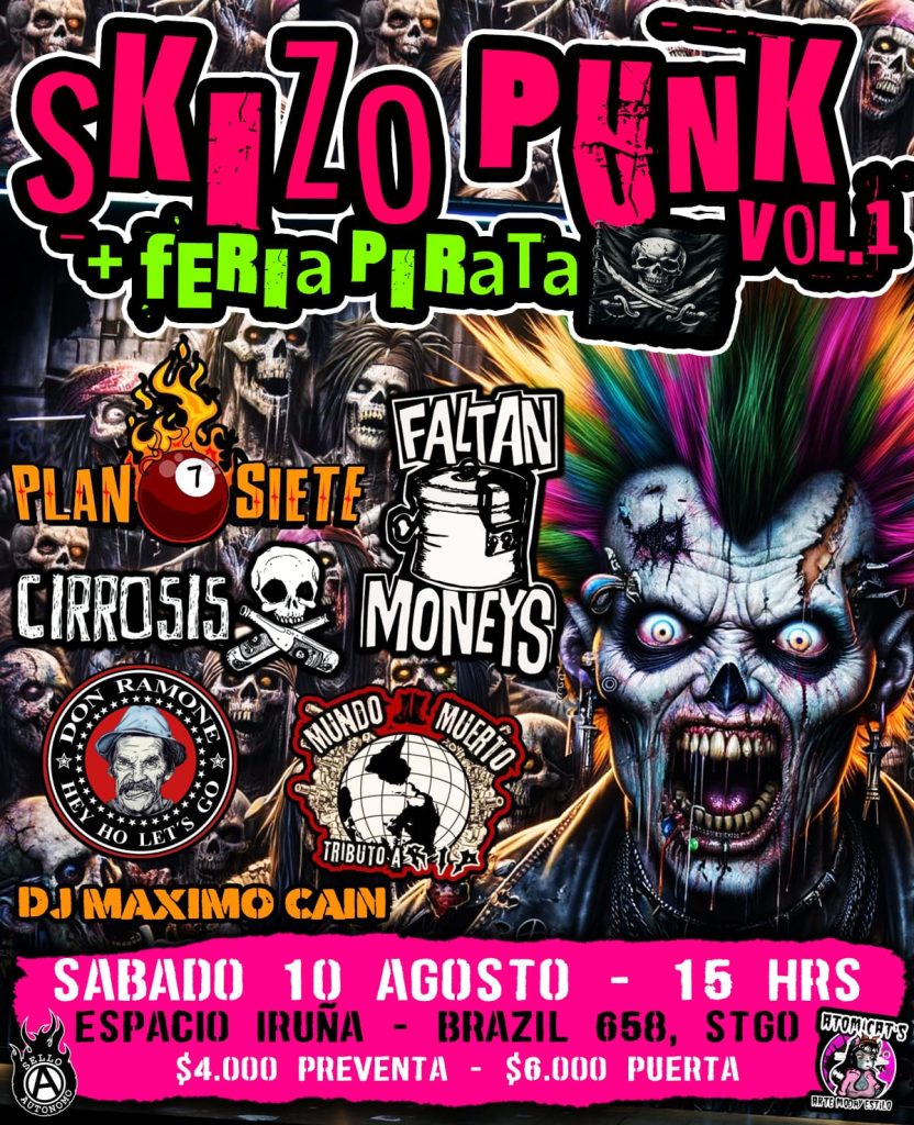 Sabado 10 agosto espacio iruña. Bandas cirrosis, faltan moneys, plan7 + tributos ramones y RIP. a pasos de plaza brazil. Colabora www.todorock.cl