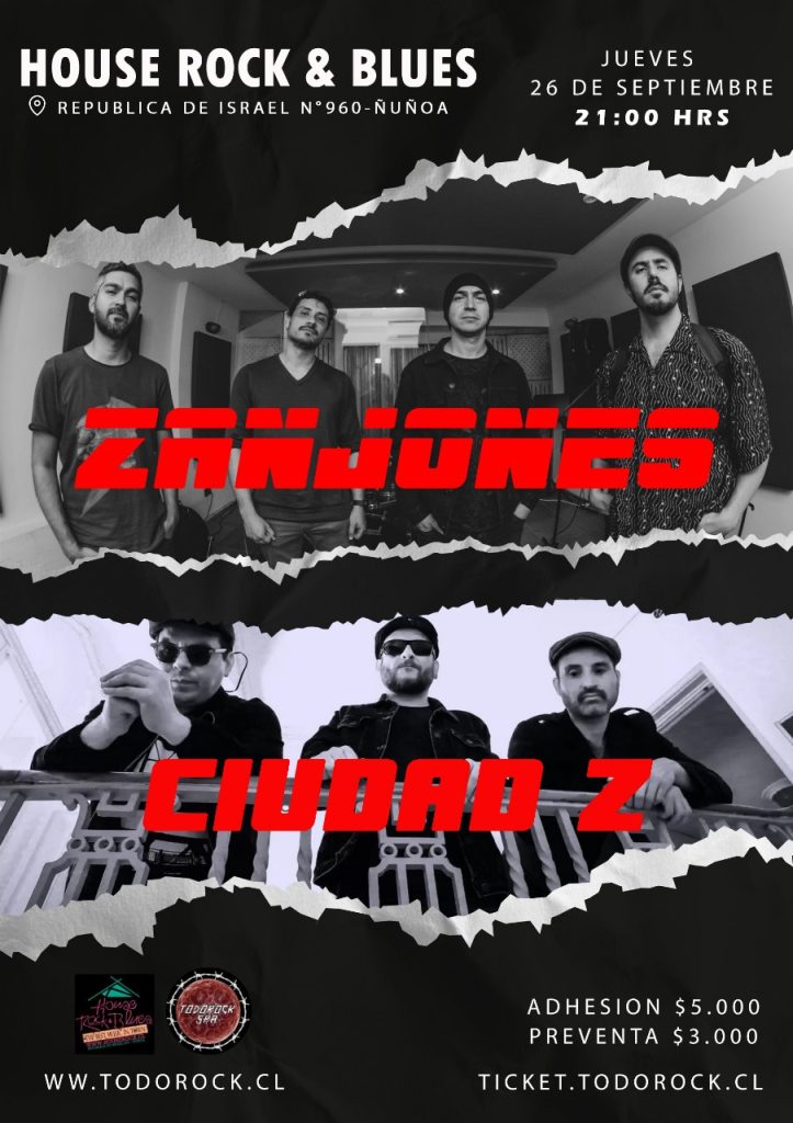 Este jueves 26 septiembre tenemos el agrado de culminar nuestro ciclo de tocatas en el consolidado House Rock & Blues de Ñuñoa junto a las bandas CIUDAD Z y ZANJONES desde las 21:00 hrs.
