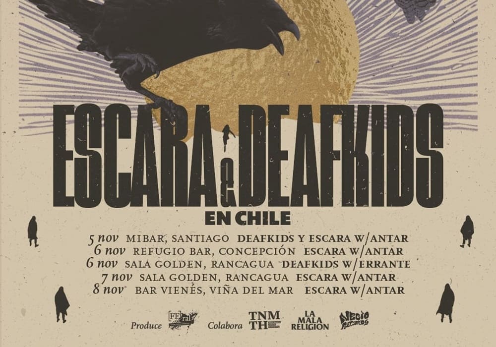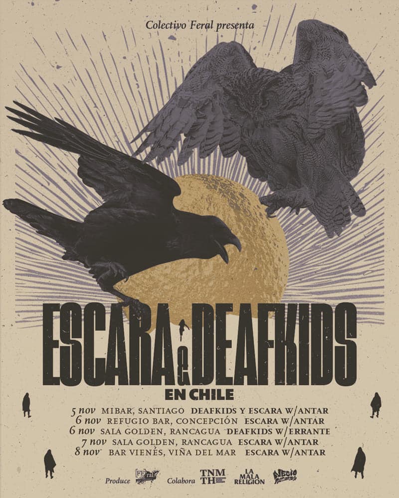 Ambas bandas tocarán en Santiago en el ya mítico MIBAR, lugar de rock y metal fundamental en la capital donde los nacionales Antar serán los encargados de abrir el evento y poner el tono de oscuridad necesario para la jornada. Luego, Deafkids se presentará en Rancagua junto a los locales Errante en Sala Golden y por su parte, Escara emprenderá una gira por Concepción, Rancagua y Viña del Mar junto a Antar, donde los esperarán las bandas locales La Chica de las Camelias en Refugio bar, Concepción, Against The Tyrants en Sala Golden, Rancagua y El Bosco en Bar Vienés, Viña del Mar.