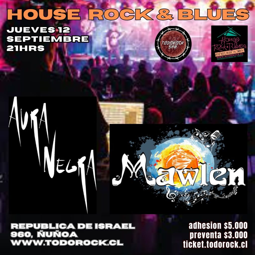 Continua el Ciclo House Rock & Blues este jueves 12 septiembre junto a Mawlen y Alma Negra desde las 21:00 hrs. invita www.todorock.cl y House Rock & Blues. Republica de Israel 960