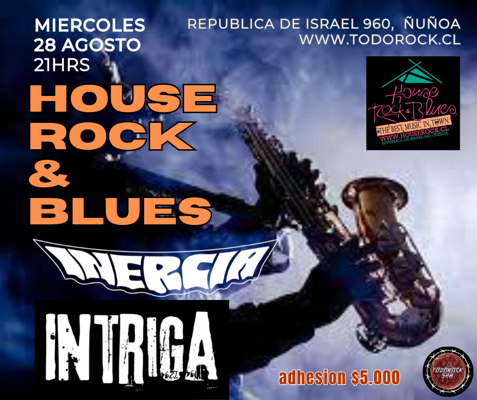 Este miércoles 28 agosto continua la expansión del circuito www.todorock.cl en Ñuñoa junto a las bandas nacionales INTRIGA E INERCIA desde las 21hrs. En el consolidado HOUSE OF ROCK&BLUES ubicado en R.Israel 960. Adhesión $5.000. Www.todorock.cl