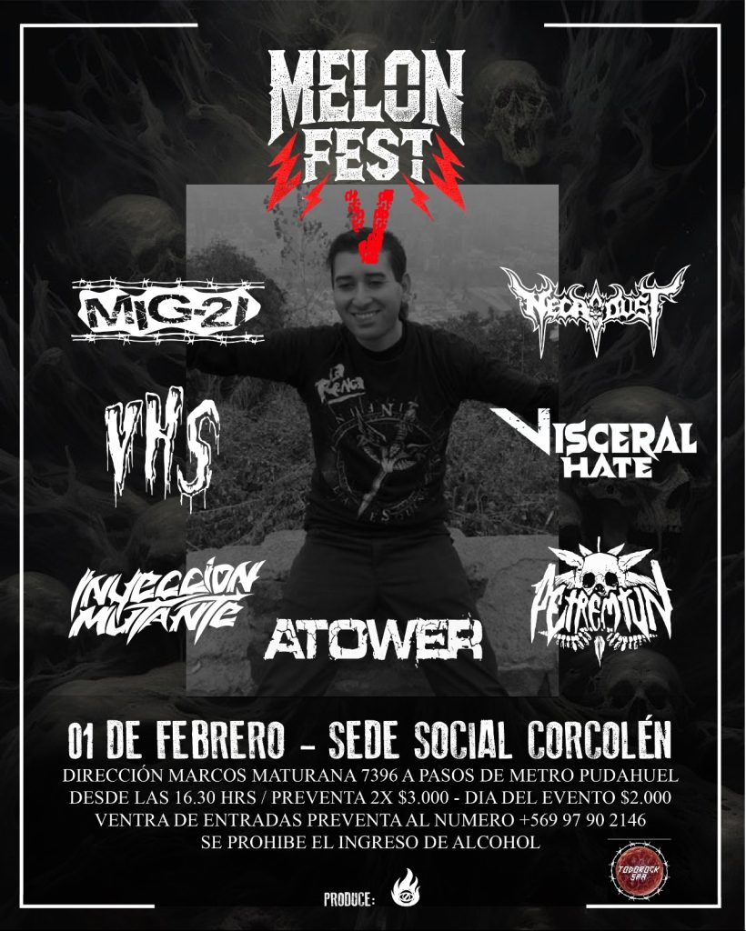 MIG-21, NECRODUST, VHS, ATOWER, INYECCION MUTANTE, VISCERAL HATE Y PETREMTUN. Adhesion $2.000. Colabora www.todorock.cl