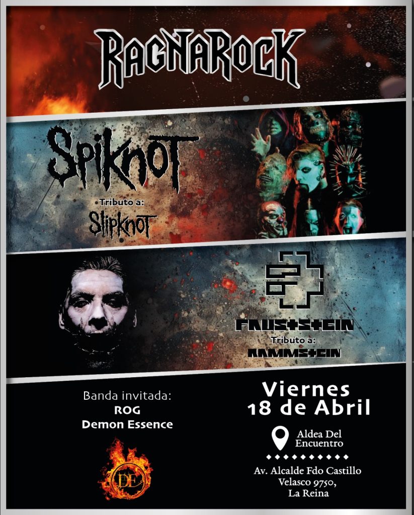Festival ragnarock viernes 18 abril en la ALDEA DEL ENCUENTRO, la reina. Tributos SLIPKNOT + RAMSTEIN + feria temática e instalaciónes. Colabora www.todorock.cl