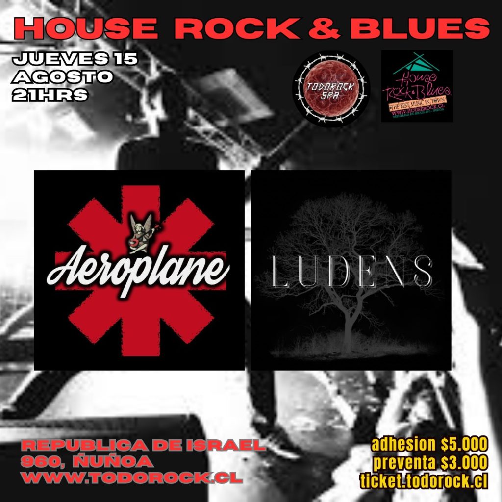Este jueves 15 agosto 21:00 hrs. en House Rock & Blues tributo a Red Hot Chilli Peppers (Aeroplane) + Ludens. República de Israel 960, Ñuñoa. Adhesión $5.000 puerta. Www.todorock.cl