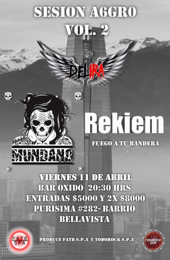 Este viernes 11 abril desde las 20:30hrs. Estaremos junto a las bandas FUEGO A TU BANDERA(REKIEM), MUNDANO y DELIRA en el bar oxido de PURISIMA 282, RECOLETA desde las 20:30 hrs.adhesion $5.000 y 2 x $8.000. Colabora www.todorock.cl