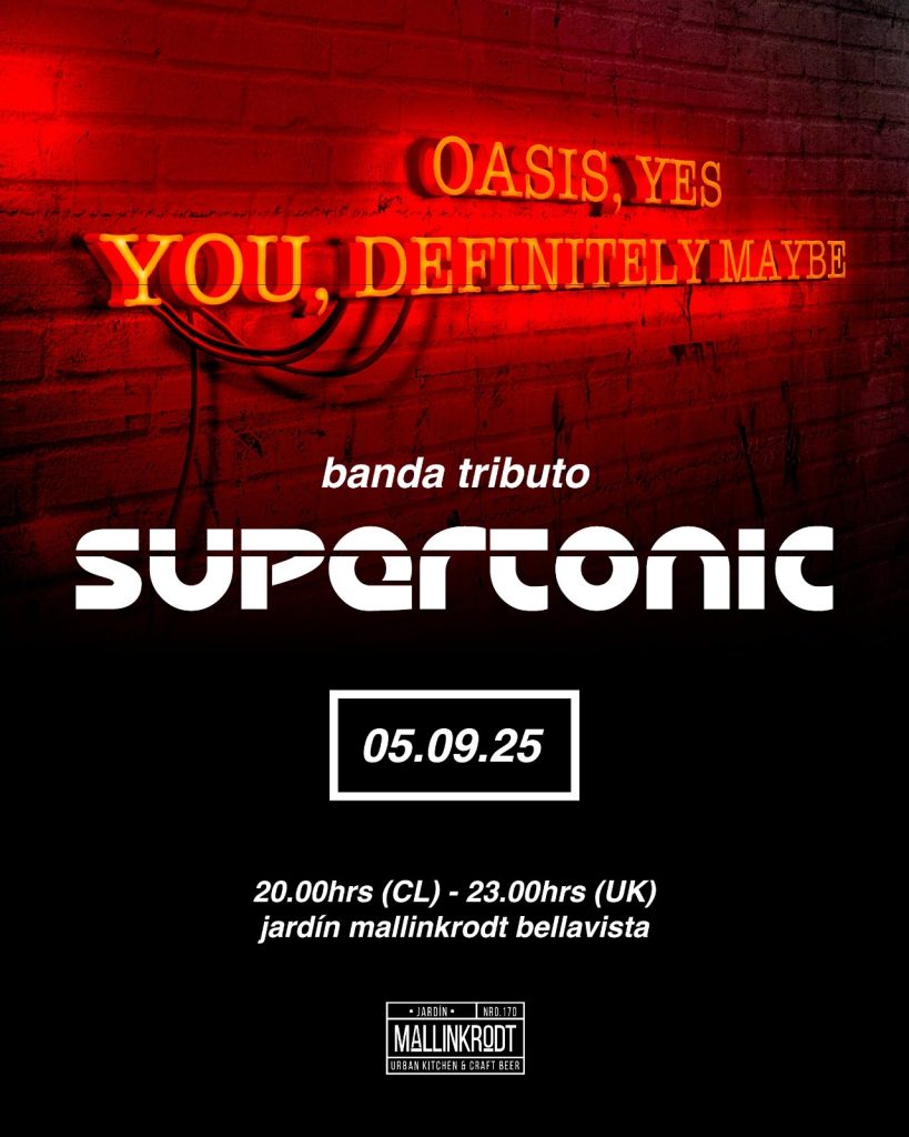 Comienza un nuevo ciclo de musica en vivo en providencia junto a SUPERTONIC TRIBUTO A OASIS este viernes 5 septiembre en el jardin MALINKRODT de bellavista desde las 20hrs. Colabora www.todorock.cl